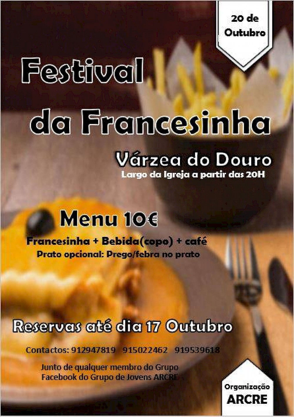 Organizado pelo grupo de jovens ARCRE, o já tradicional Festival da Francesinha volta a Várzea do Douro para mais uma edição, com o objetivo de angariação de fundos para a Festa de S. Martinho!