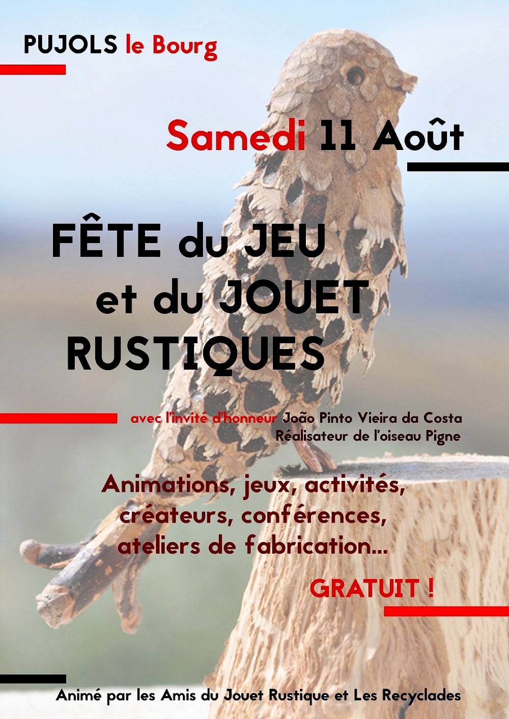 Quero agradecer a Daniel Descomps e aos "Amis de la Maison du Jouet Rustique" o convite para estar aqui em Pujols, uma localidade que tem tanto de antiguidade como de beleza. Assim, tenho a oportunidade de visitar “La maison du Jouet rustique” e conhecer pessoalmente o mestre do brinquedo rustique, Daniel Descomps.
